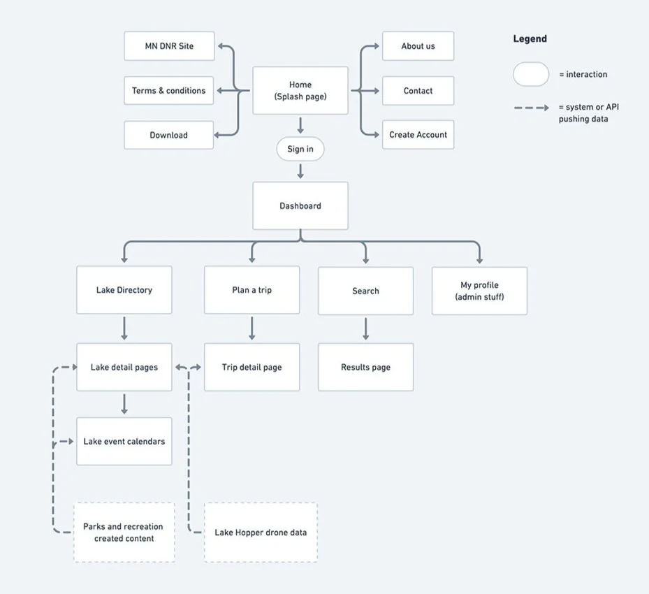 In my graduate web design class, we were tasked with picking a pseudo client and creating an IoT app for our local community. My concept is for the Minnesota Department of Natural Resources (DNR) that monitors lake conditions and informs visitors about the weather, when the lake is busy, and updates about any lake closings so they can plan their trip accordingly.